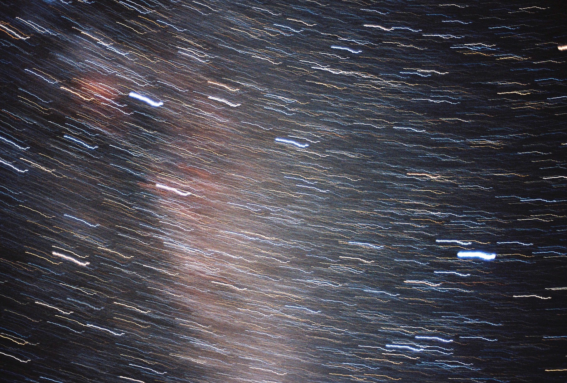 On the occasion of the 2018 Perseid meteor shower, I lay on the ground near the Observatory's dome, holding my manual film camera in my hand. I opened the camera's shutter and held it open, keeping it as still as possible. The lines and cloudy whisps in the images are the result of the stars as they trace their path across the sky, as well as the micromovements of my hand, influenced by my breathing and my beating heart.